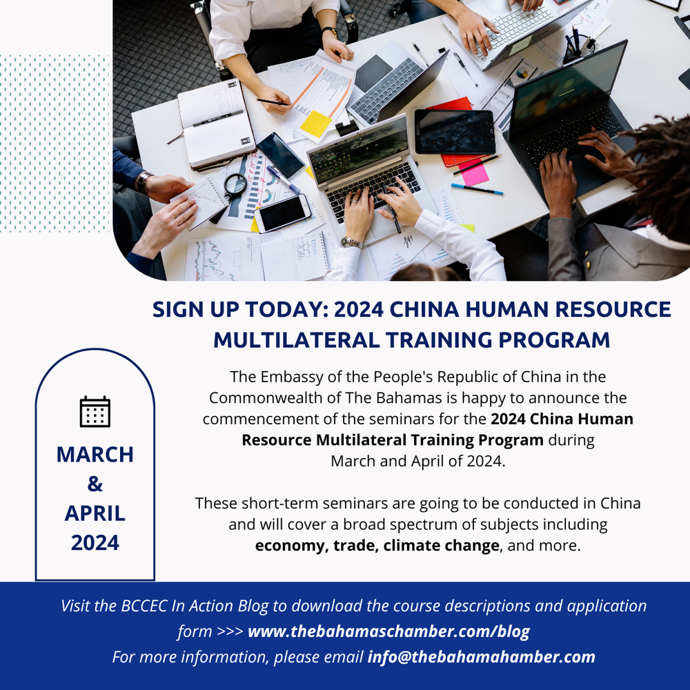 The Embassy of the People's Republic of China in the Commonwealth of The Bahamas is happy to announce the commencement of the seminars for the 2024 China Human Resource Multilateral Training Program during March and April of 2024.